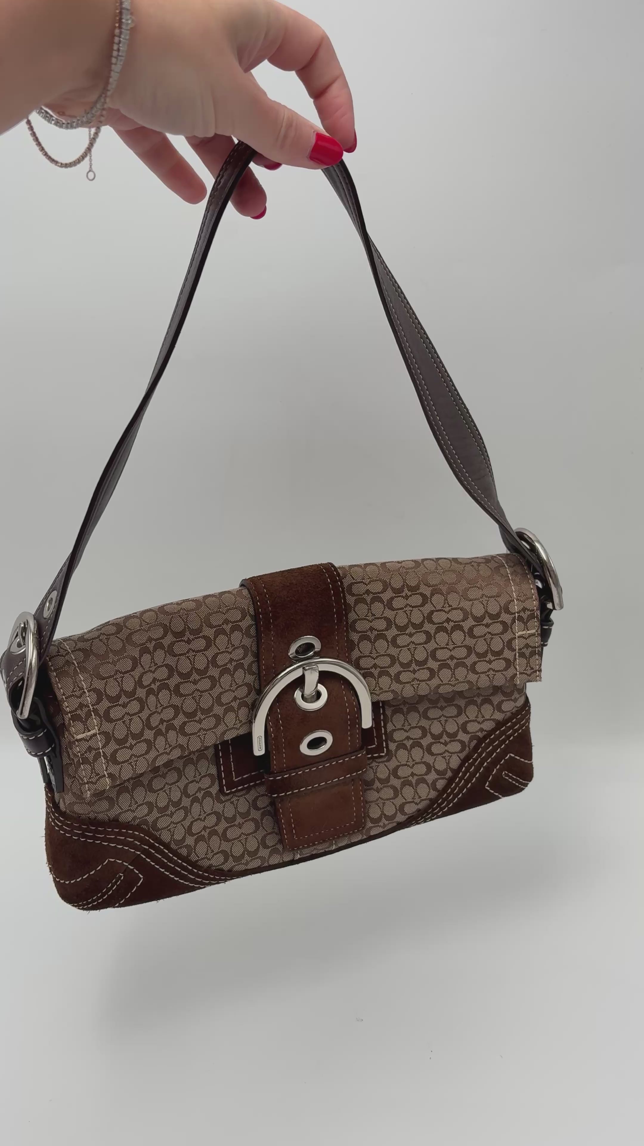 תיק יד/ כתף Coach, עשוי עור ועור זמש.
