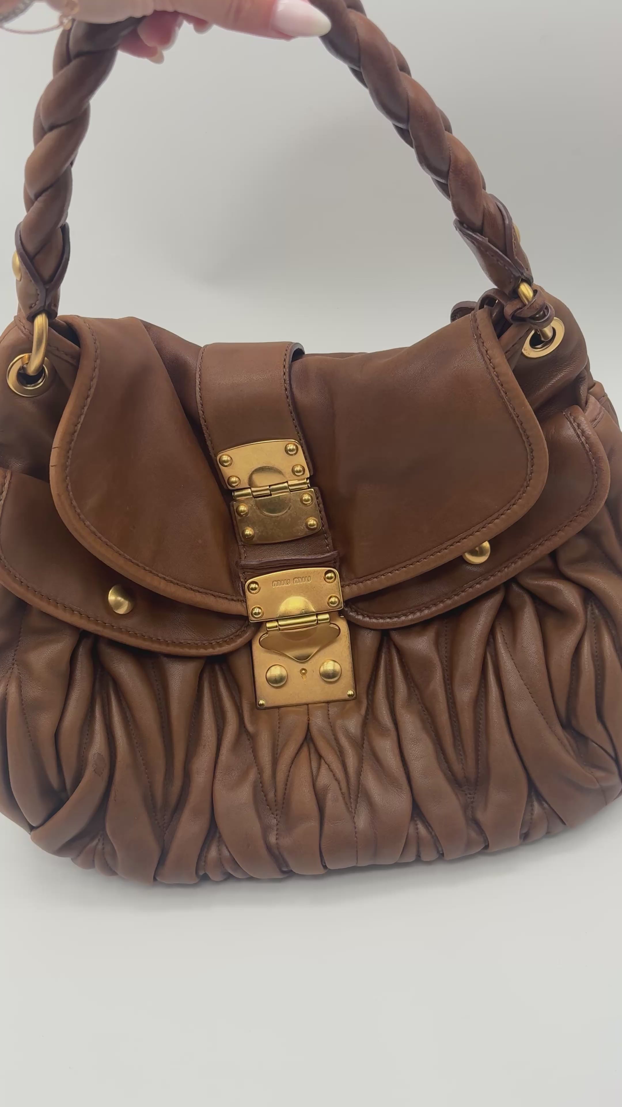 Miu Miu GHW 2 Way Shoulder Bag Leather Brown