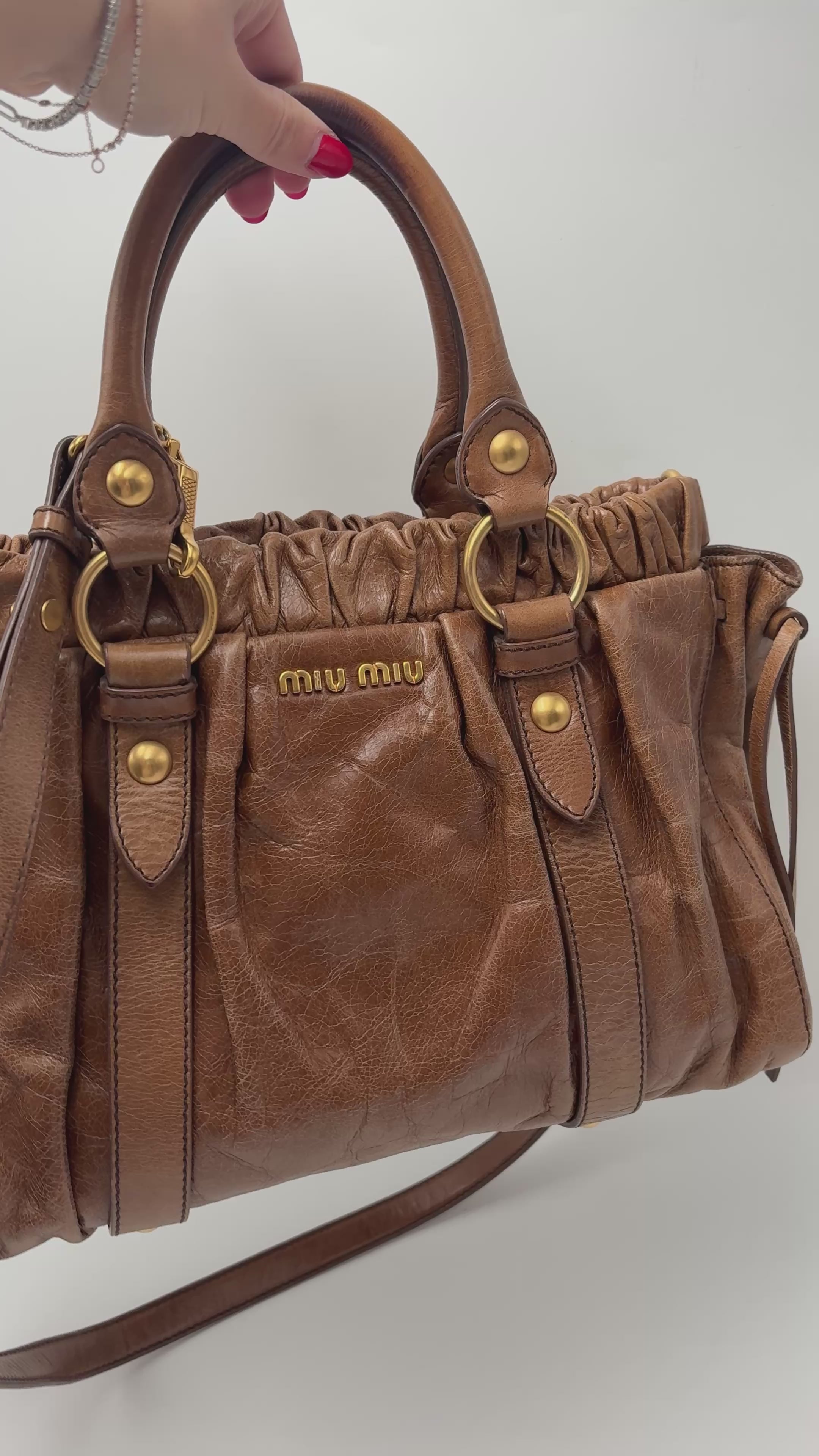 Miu Miu Matelassé Brown Leather Shoulder Bag Tote