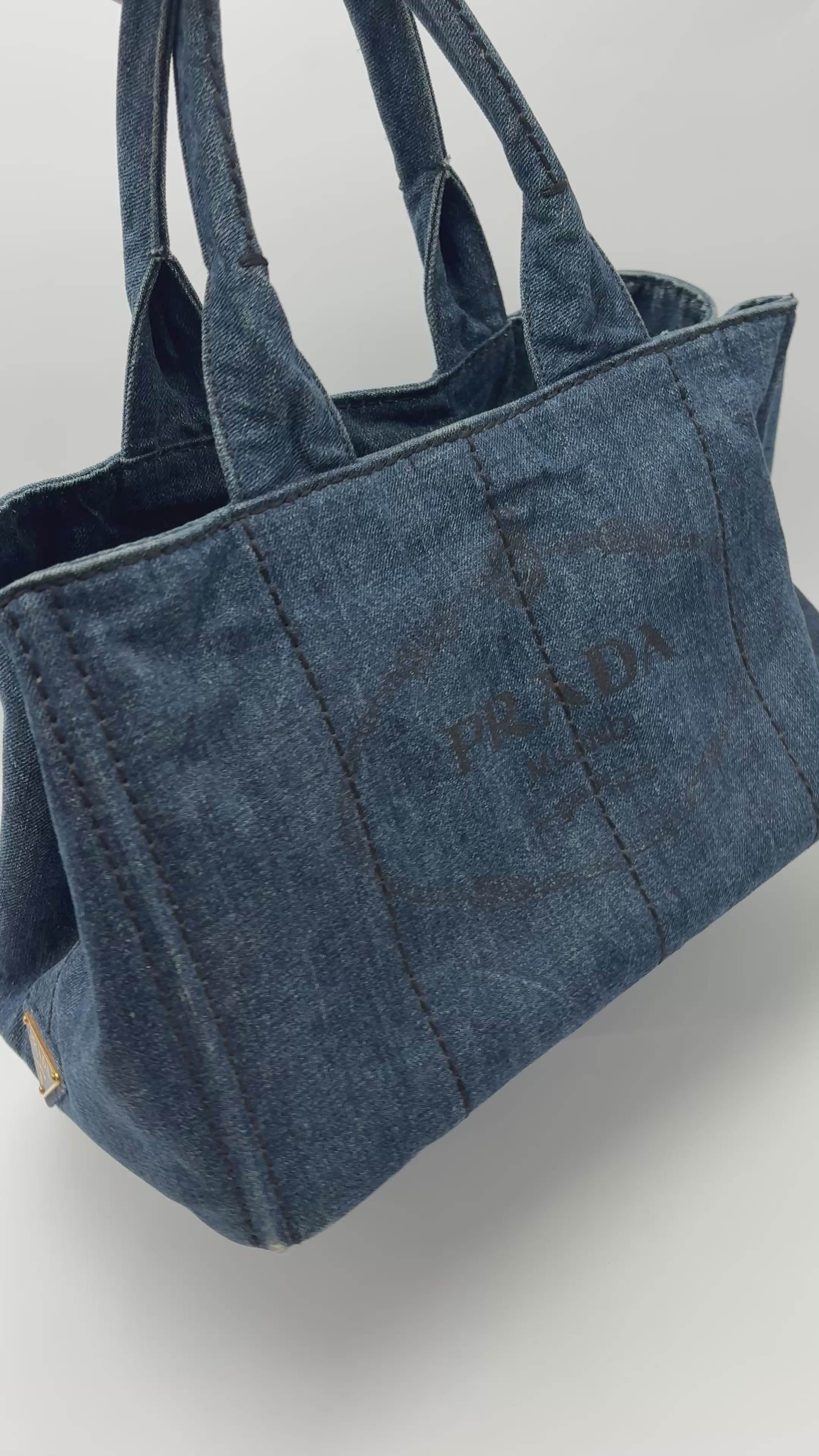 PRADA CANAPA LARGE CANVAS TOTE BAG HAND BAG DENIM BLUE